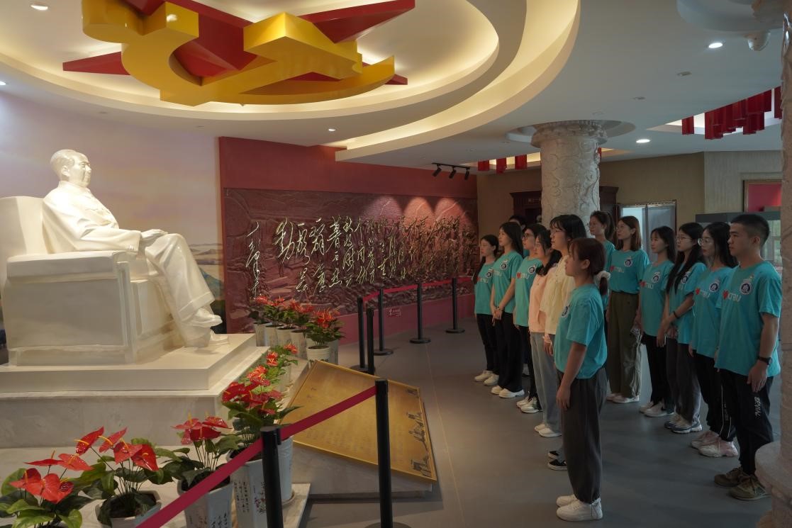 参观伊始,实践团全体成员在讲解员的组织下举行了庄重的缅怀仪式,向毛泽东同志的坐像深深三鞠躬,表达了无限敬仰和深切缅怀。