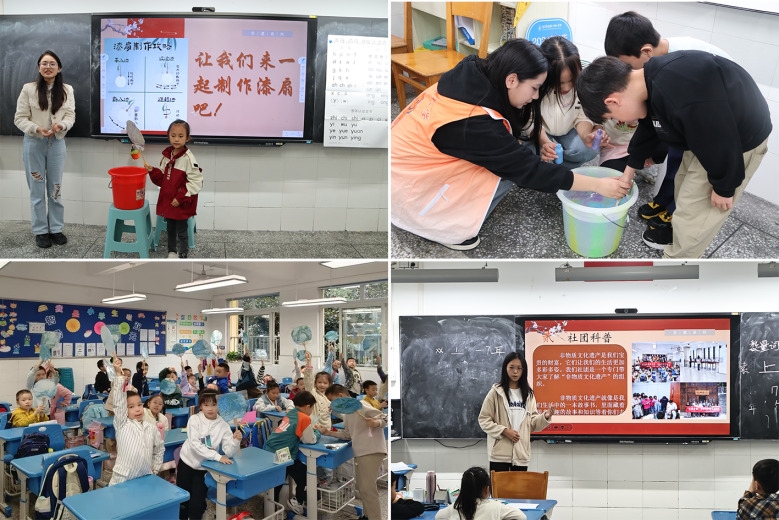 为持续推进大中小学思政课一体化建设,促进非遗文化在小学校园浸润传播,丰富小学生校园文化生活,11月8日,校团委联合2138CC太阳集团附属小学(江南小学),组织我校学生社团非物质文化遗产研究会、科技协会通过讲授、互动、问答的方式开展了别开生面的校园公开课,将非遗文化与力学知识融入小学校园生活。