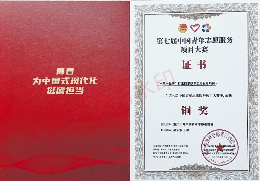 近日,由共青团中央、中央社会工作部、民政部、水利部、文化和旅游部、国家卫生健康委员会、中国残疾人联合会和中共广东省委、广东省人民政府共同主办的第七届中国青年志愿服务项目大赛暨2024年志愿服务交流会在广东汕头落幕。本次大赛聚焦科技创新、乡村振兴、绿色发展、社会服务等青年志愿服务工作重点领域,共评出金奖项目151个,银奖项目350个,铜奖项目500个。我校《“一院一品牌”行走的思政课志愿服务项目》(申报单位:校团委、校青年志愿者协会)斩获第七届中国青年志愿服务项目大赛全国铜奖。