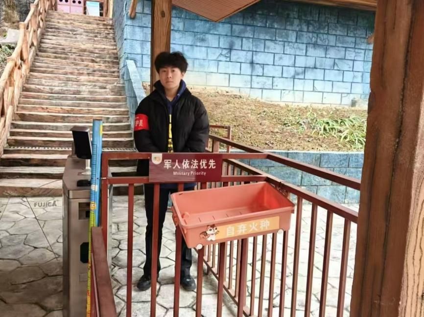 寒假期间,凡子锐在酉阳旅游景区的松鼠丛林乐园担任志愿者,主要负责设备看护和卫生打扫工作。在设备看护方面,凡子锐时刻保持专注,密切留意游乐设施的运行状态,确保游客安全。每次运营前,凡子锐都协助工作人员进行细致检查,排除潜在隐患。在卫生打扫上,凡子锐积极清理游乐区的垃圾,维护环境整洁,为游客营造舒适的游玩环境。尤其在游客高峰时段,凡子锐加大清扫频次,保障游乐园的干净与美观。