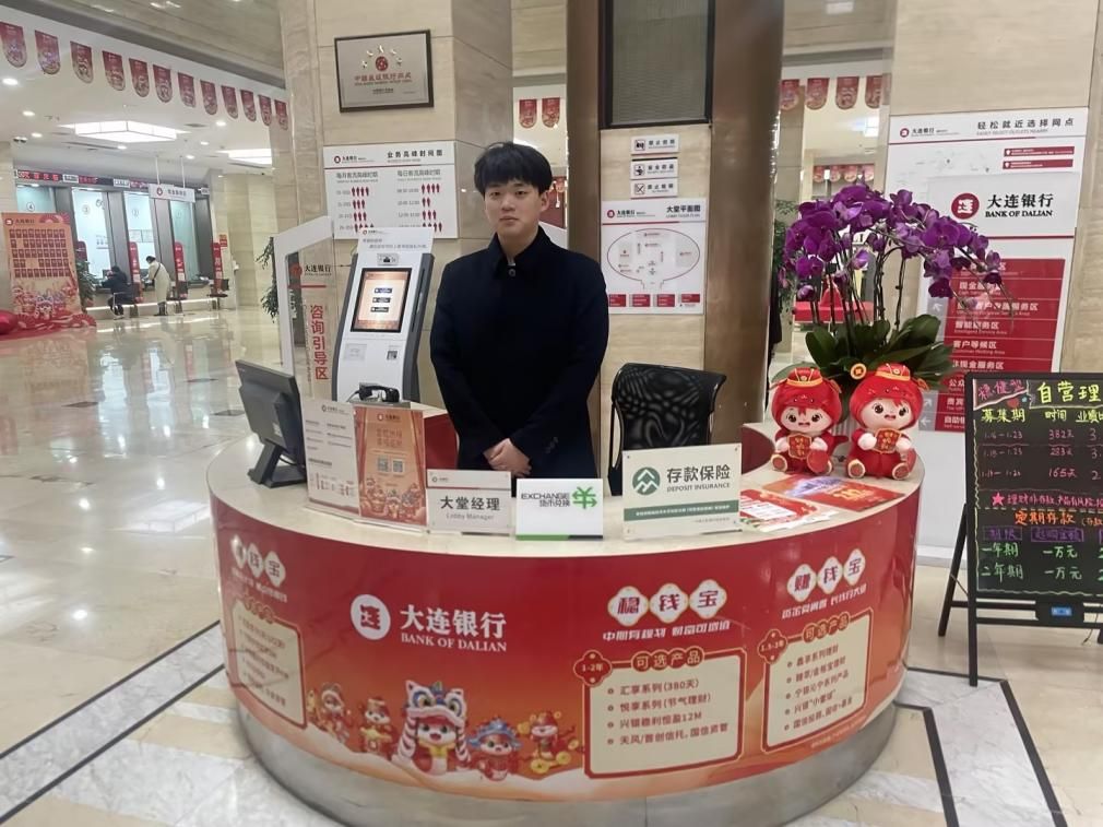 在寒假期间,何腾飞有幸作为大堂经理实习生在大连银行实习,这段经历让何腾飞收获颇丰,也让他对银行工作有了更深入的理解。实习初期,面对复杂的工作环境和多样化的客户需求,何腾飞感到有些紧张和无措。在指导老师的帮助下,何腾飞迅速熟悉了大堂经理的职责,包括引导客户、解答咨询、协助业务办理等。每天,何腾飞都会以饱满的热情迎接每一位客户,努力为他们提供最优质的服务。通过与客户的沟通,何腾飞学会了如何根据不同需求灵活应对,也深刻体会到耐心和细心的重要性。在工作中,何腾飞意识到团队协作的力量。大堂经理的工作需要与柜台、理财等多个岗位紧密配合。当客户等待时间较长时,何腾飞会协助柜台分流客户;遇到复杂问题时,何腾飞会与同事共同商讨解决方案,提升解决问题能力。