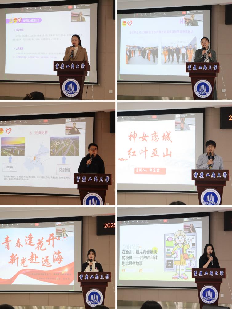 会上,市志愿服务工作指导中心蒋汶臻首先作全市西部计划总体实施情况介绍,她从全市今年的招募规模、计划安排、相关政策等进行了解读。10个服务县西部计划项目办围绕本辖区经济社会发展概况、政策待遇、管理服务情况及招募需求进行宣传推介,激励引导毕业生积极加入西部计划,为西部发展建设贡献青春力量。随后,沙坪坝区优秀西部计划志愿者蒋丽雯、合川区优秀西部计划志愿者唐婕分享了他们的志愿故事,回顾了他们在工作岗位上不懈奋斗、服务人民的成长历程,号召更多的青年学子走进西部基层一线,用一年不长的时间做一件终生难忘的事。宣讲结束后,来到现场的10个区县西部计划负责同志在就业大厅开展现场招募。