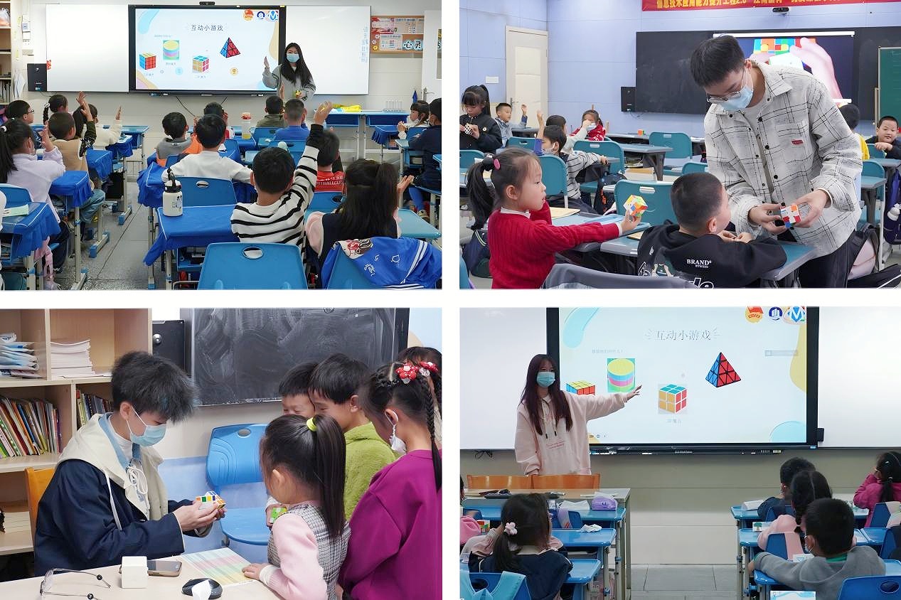 M魔方社的成员们为一年级的同学们介绍了魔方的历史,讲解了操作魔方的益处,科普了魔方的基础知识。社团成员们通过播放视频和展示图片,生动介绍了魔方的发展历程和多样化玩法,分享了魔方高手的经验。随后,成员们带领同学们进行魔方实操,体验转动魔方的乐趣。一年级同学们积极动脑动手,课堂氛围活跃热烈。