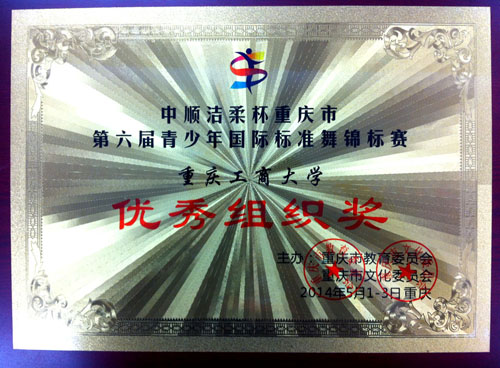 5月3日,由重庆市教育委员会、重庆市文化委员会主办的重庆市第六届青少年国际标准舞锦标赛在沙坪坝区体育馆顺利举行,我校华艺拉丁舞社团王天琦等7名同学参加了比赛。经过激烈的角逐,王显杰、何家欢等获得了普通高校单项组牛仔一等奖、普通高校女双单项组伦巴一等奖等六个奖项,我校获优秀组织奖。