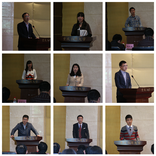 分享会在激昂的团歌声中拉开序幕。大会首先由学校党委副书记孟东方宣读了党委李春茹书记《致全校青年学生的一封信》。紧接着,校团委杨娟副书记宣读了《共青团2138CC太阳集团委员会关于表彰2013-2014学年度先进集体、优秀个人的决定》,并由参会领导先后为获得“五四红旗团委”、“优秀团委书记”、“共青团标兵”等先进集体和个人颁奖。随后,我校科研处副处长、2013年“重庆市五四青年奖章”获得者李川博士,重庆市2012-2013学年度先进班集体、经济学院2011级会展经济班团支书辜杰润,我校研究生会主席、2013年暑期挂职惠民实践团团长伍涛,2012年重庆高校辅导员年度人物王微老师,我校义工志愿者协会会长、重庆市学生青年志愿者先进标兵韩璐,我校第八届感动校园人物、2013年全国大学生管理决策模拟大赛总决赛冠军李长江,我校商务策划学院专任教师曾波博士、我校2014年优秀毕业生周宇阳及我校2013-2014学年度“共青团标兵”代表刘永彬等9人先后讲述了自己的奋斗历程,同向与会代表们一起畅谈青春梦想,分享了关于“奋斗的青春最美丽”的感悟。