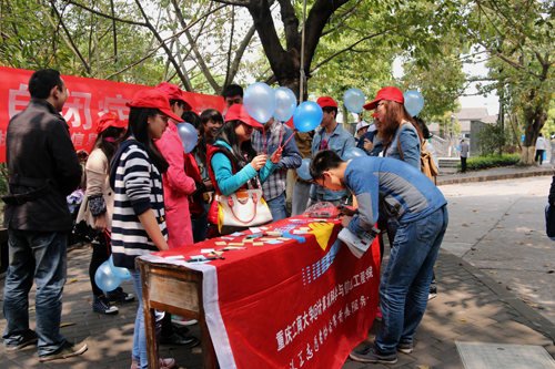 为提高人们对自闭症患者的关注,自2008年起,每年4月2日被定为“世界自闭症日”。4月2日,我校义工志愿者积极响应“壹基金”关爱自闭症儿童的号召,在南岸校区、重庆南坪宏声文化广场组织开展“蓝色行动·今天不说话”关爱自闭症儿童倡导活动。