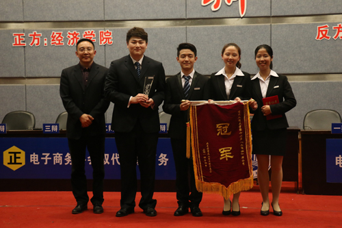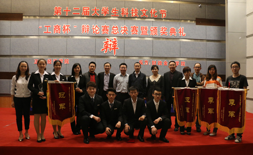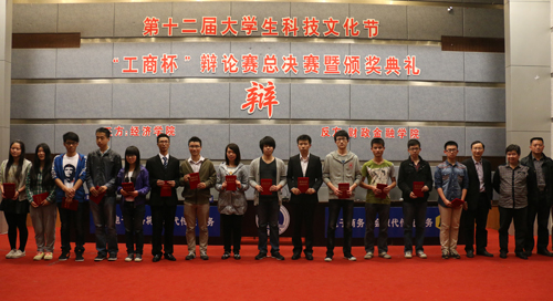 “工商杯”辩论赛冠军,正方四辩经济学院唐宇轩同学获总决赛“优秀辩手”,反方四辩财政金融学院胡靓同学被评为本届辩论赛“最佳辩手”。随后,与会领导为本届辩论赛的冠军、亚军、季军、优秀辩手等集体和个人颁奖,至此,我校第十二届“工商杯”辩论赛圆满落下帷幕。