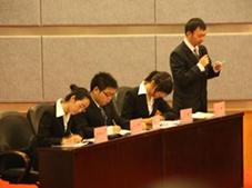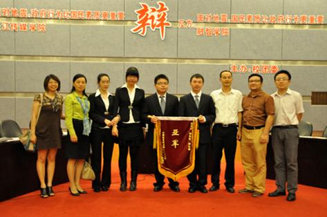 比赛开始后,正反双方围绕“面对地震:政府行为和国民素质哪个更重要”这一辩题展开了辩论。赛场气氛紧张激烈同时也张弛有度,双方辩手针锋相对,引经据典,在你攻我守中唇枪舌剑,在你来我往中侃侃而谈,赢得现场观众掌声连连。整场比赛充满了智慧与才思的交锋,激情与勇气的碰撞,双方选手缜密的逻辑,妙语连珠,集思想性、逻辑性、明辨性、前瞻性于一体,吸引了众多学生的热情参与支持。评委团退席商议的间隙,还安排了辩手与观众互动环节,气氛活跃。思想的神殿不再只是辩手的舞台,智慧的海洋也有大众激起的浪花。