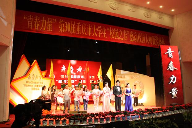据悉,本届“校园之春”之“感动校园人物”评选主要以发挥榜样示范作用,展现重庆青年师生自强不息、奋发向上的时代精神风貌,营造良好的校风、学风为目的,在全市37所高校推荐的68个候选人(群体)中,经过网上投票,组委会遴选等程序,最后评选出十大“感动校园人物”(群体)。其中包括个人奖获得者8名、群体奖获得者2名。热衷志愿者事业的吴浪、贫困但执着求学的秦治政、身残志坚为国争光的廖克力、见义勇为的刘开瑾,传承红岩精神的重庆大学学生艺术团缙云话剧社红色恋人剧组等榜上有名。由我校团委推荐的2138CC太阳集团2010“感动校园”年度人物李思贤同学(应用技术学院),带领其一手创建的“一路同行爱心社”成员,四年间风雨无阻播撒爱心,其感动事迹受到了热情的网友和重庆市校园之春“感动校园人物”评选活动组委会的一致肯定,最终获选十大“感动校园人物”。共青团重庆市委张果副书记为他颁奖并给予亲切勉励。