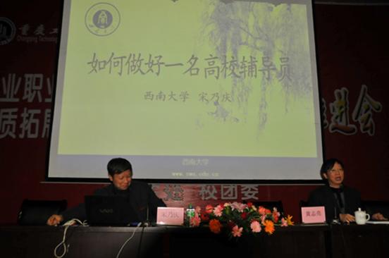 11月20日下午,受我校党委副书记、副校长黄志亮教授的邀请,西南大学副校长宋乃庆教授到我校为学生工作队伍作了一场名为《如何做好一名高校辅导员》的专题讲座。黄志亮教授致欢迎辞。