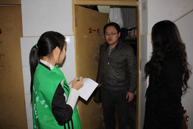 校团委蒋年韬副书记亲自带领义工志愿者到学生寝室督察体温统计情况