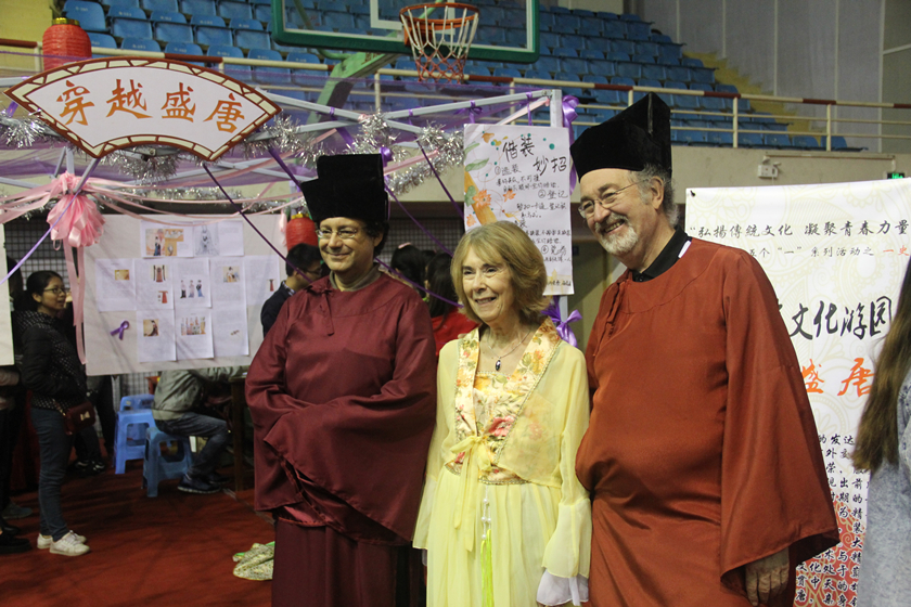 一幕皇帝上朝的舞台剧拉开活动的帷幕,引领观众走进唐朝,开启游园会。 “帝王故事”、“穿越盛唐”、“翰墨飘香”、“唐诗风韵”、“梦回大唐”、“历史剪影”六大展区各显风采;唐诗背诵、书法比赛、人物解析、服饰租赁等活动形式更让同学们充分融入唐朝文化,感受唐朝魅力。中场表演的T台秀赢得同学们热烈掌声,唐朝服饰映入眼帘,诗歌朗诵、古曲演唱让人回味无穷。
