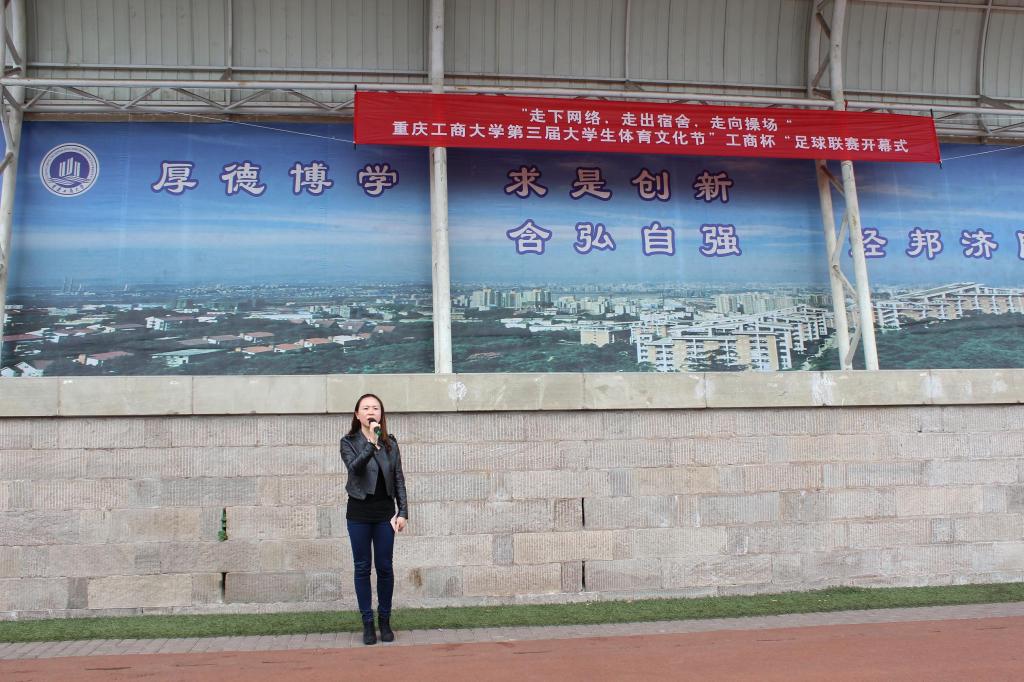 为积极响应团中央“走下网络、走出宿舍、走向操场”的号召,丰富学生的校园文化生活,增强同学们的身体素质。由校体委、校团委联合举办的我校第三届大学生体育文化节之“工商杯”足球联赛于4月23日12:30在南岸校区南区足球场开幕。校团委杨娟副书记,校体委办公室主任、体育学院范文杰副院长,校团委陆嘉老师,足球代表队、教练员、裁判员等参加了开幕式。