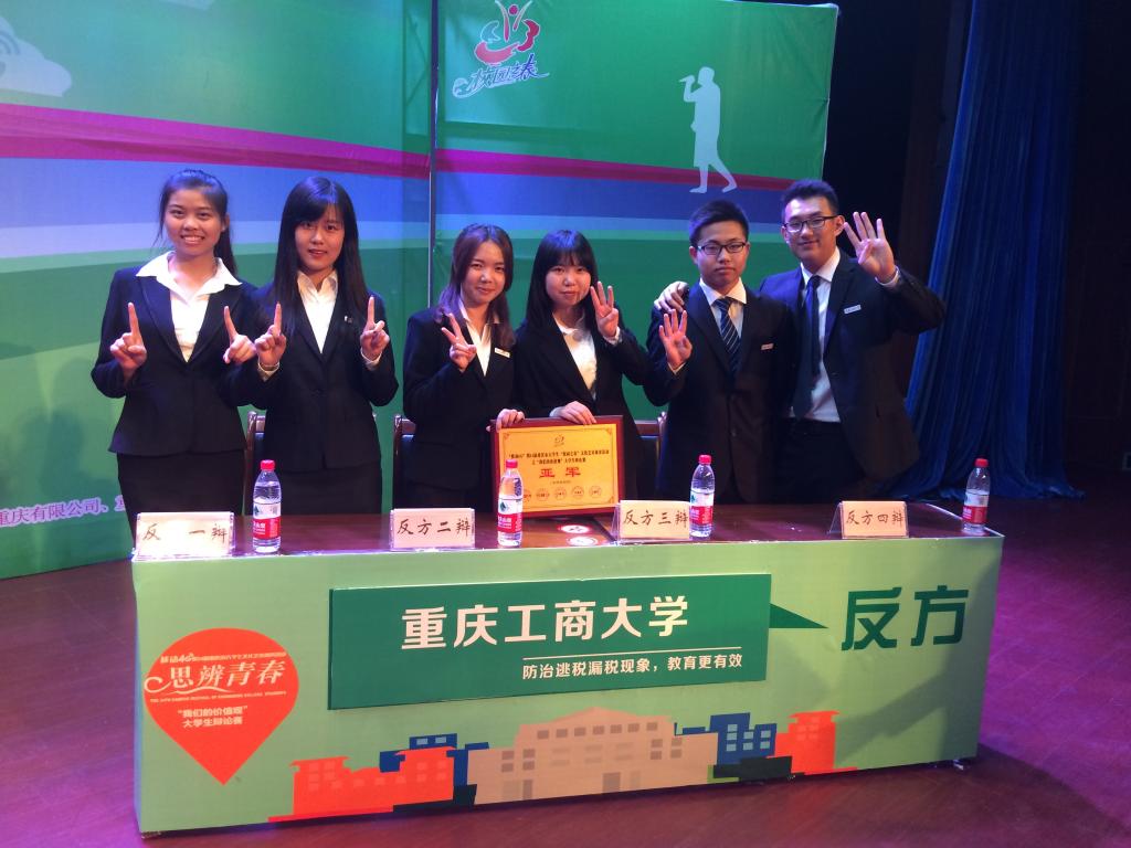 5月13日晚19:00,重庆市第34届大学生“校园之春”辩论赛总决赛在西南政法大学举行。本届“校园之春”税收专题辩论赛通过“国税搭台、高校唱戏、专家点评”的方式展开,全市有60余所高校参加了比赛,我校辩论队派出李映月、李染陶、盛绍琴、曲冠群、郭立恒、郝春香等6位同学参赛,在16强争夺赛,8强赛,半决赛中分别对阵重庆科技学院、西南大学、重庆师范大学涉外商贸学院、重庆邮电大学移动学院,顺利进入决赛。