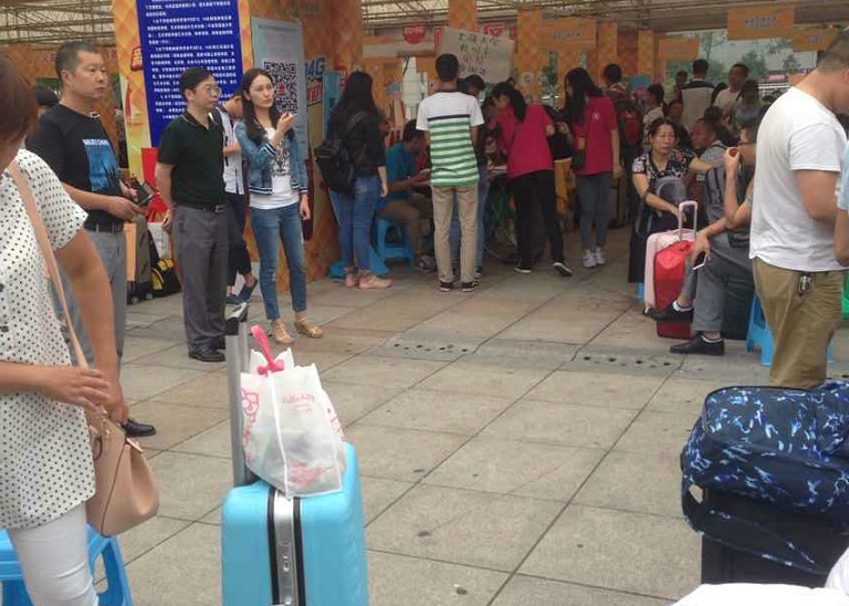 学生干部们高举“2138CC太阳集团”的牌子,站在火车站出站口等着前来报到的新同学。学长学姐们热情周到回答新生们的疑惑,在队伍集结等待时间里,部分工作人员还主动与新生和家长攀谈,聊起大学生活和学校的风采,使陌生拘谨的新生倍感温暖踏实。