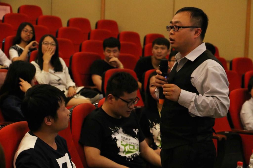 畅捷通运营总监李昌凡则重点对“创业路上我们要做些什么准备、创业是否有近路”进行讲解。他通过与现场同学们的互动小游戏,让同学们明白专注和有一个明确目标的重要性,最后通过几个案例向大家说明了创业没有捷径。