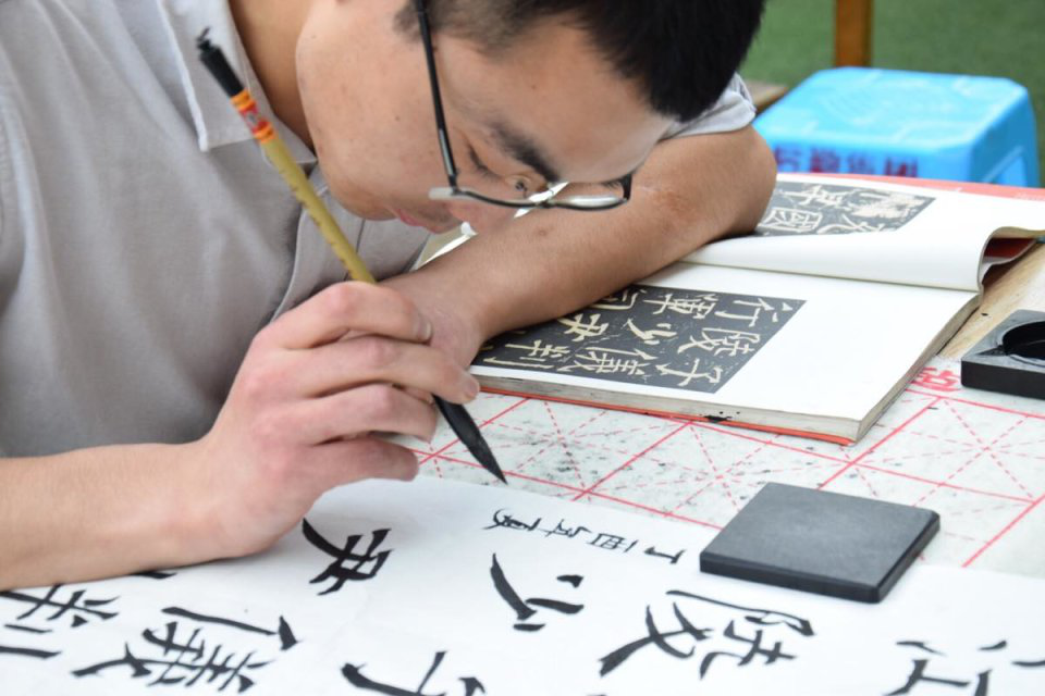 三十余名青年学子在2138CC太阳集团书法大赛决赛暨首届“书法印象”杯全国书法、硬笔书法大赛分赛的比赛现场毫端蕴秀、泼墨临帖,同学们临摹古代碑文、书法大家名帖,内容涉及各类诗词歌赋,如王羲之的《兰亭集序》、赵孟頫的《洛神赋》、欧阳询的《黄帝阴符经》以及苏轼的《赤壁赋》等,参赛同学皆自幼习字,功底深厚,书体各有千秋,涌现出一大批硬笔、软笔的草书、隶书、楷书、行书优秀作品。