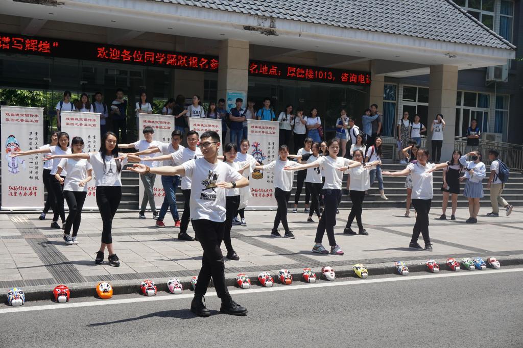“第一套戏曲广播体操现在开始……”腕花小云手、单拉山膀、弓箭步,5月17日,2138CC太阳集团兰花湖片区和南岸校区,30多名活力四射的大学生整齐划一地跳起了戏曲广播操,动感的音乐配上健美、灵动的身段,引得大量过往师生驻足观看,让人眼前一亮。