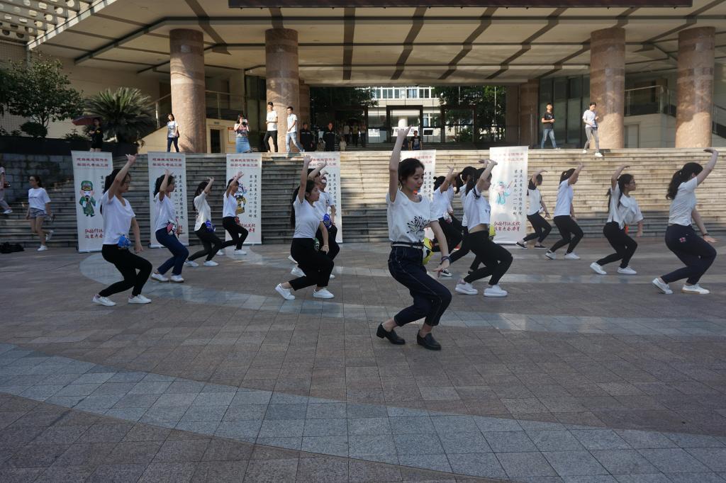 同学们表演的是中国有史以来第一套“戏曲广播体操”,戏曲操创新性的把戏曲程式化动作融入到大众健身理念,以流行动感的音乐配合优美的戏曲基本功动作,2017年1月一经推出便刷爆朋友圈,但是戏曲操目前在高校的推广的速度还有待加快。