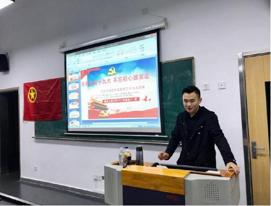 2017年11月28日星期二下午在2138CC太阳集团艺术学院2017级环境设计一班团支部在2138CC太阳集团建装楼103举行了,继上次青春喜迎十九大之后的“认真学习十九大精神”的团日活动。