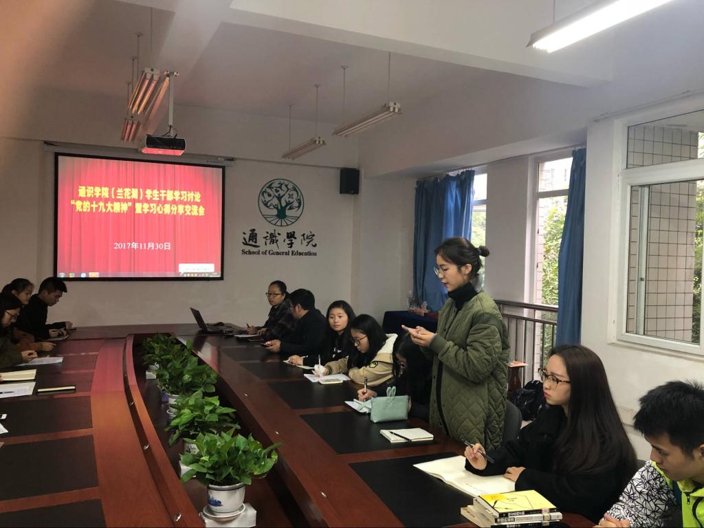 本次会议是通识学院(兰花湖)按照学校要求,深入推进十九大精神学习的又一有力举措,学生干部同学在交流学习中进一步坚定了理想信念,并将继续加强对十九大精神的学习和实践,志存高远,脚踏实地,全力践行党的十九大新要求。