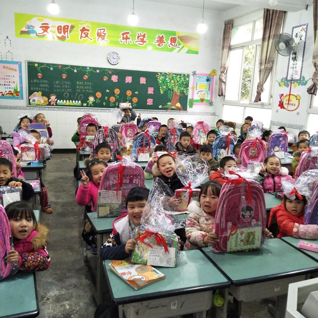 万州区龙驹镇中心小学的孩子们收到了新年礼物