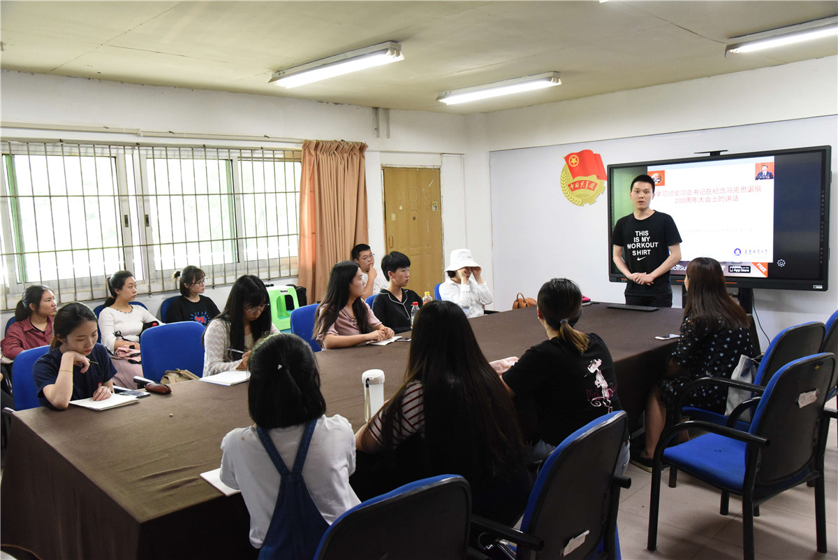 为紧密团结在以习近平同志为核心的党中央周围,坚持和发展马克思主义,不断深入贯彻学习和指导实践工作,5月8日中午,我校习近平新时代中国特色社会主义思想学生研习团在团委会议室,组织开展了“学习讨论习总书记在纪念马克思诞辰200周年大会上的讲话”的活动,来自研习团的20余位代表参加了活动。