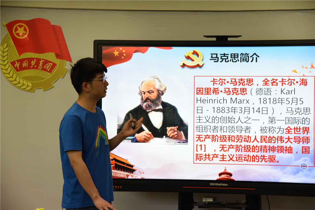 研究生会冯佟同学从爱民为民、勤奋好学、艰苦奋斗、求真务实四个方面作题为“习近平的特殊品质学习心得体会”的交流,她表示我们青年一代要坚定跟党走,不忘初心,珍惜时光,敢于拼搏奋斗、敢于直面困难,做社会主义事业合格的接班人。来自大学生自我管理与服务委员会的刘景辉同学作题为“马克思主义真理力量”的交流,从马克思简介、马克思主义的发展史、创新的重要性和如何提高马克思主义创新思维能力四个方面对马克思和马克思主义进行解读;刘珍利同学以“感受信仰的力量,高扬伟大的旗帜”为主题进行了交流发言,她表示马克思主义是中国共产党人理想信念的灵魂,青年一代要有责任与担当,更要有理想和信念,积极投身到国家的各项事业当中。