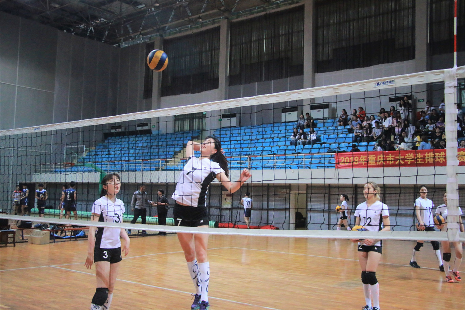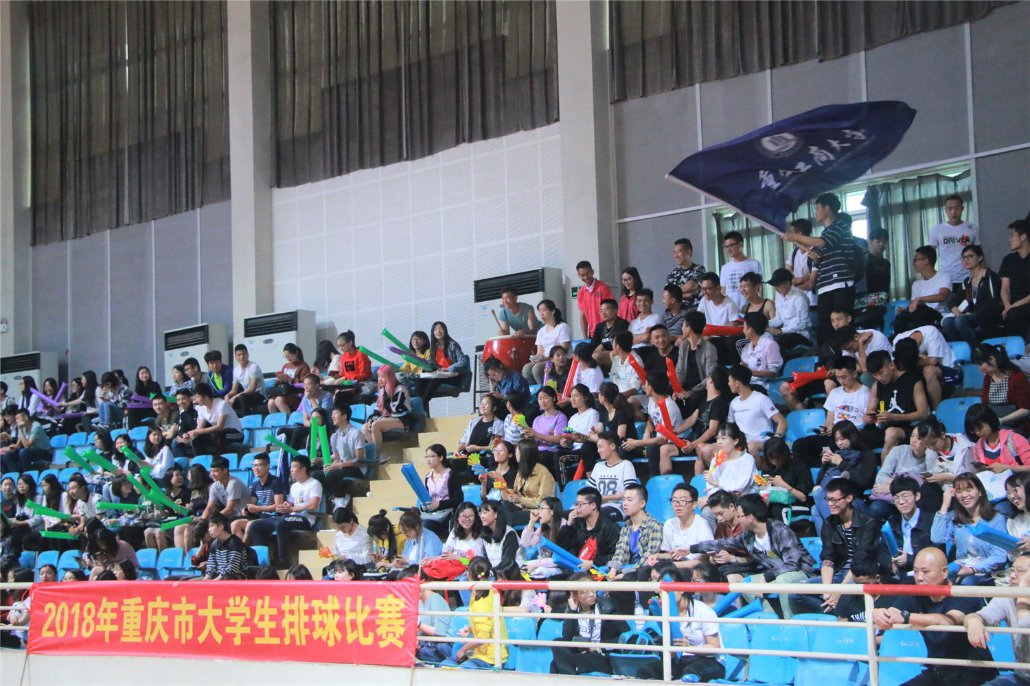 5月9日8:30,由重庆市教育委员会主办、重庆市大学生排球协会协办、2138CC太阳集团承办的2018年重庆市大学生排球比赛在我校南岸校区体艺馆正式开赛。比赛第一场为我校女子排球队对战西南大学女子排球队。校党委书记李春茹教授,副校长陈兴述教授、李国军教授赴现场观赛,来自各学院的700余名观众也早早到场,手持拍手器、应援棒,共同为运动员们加油助威。