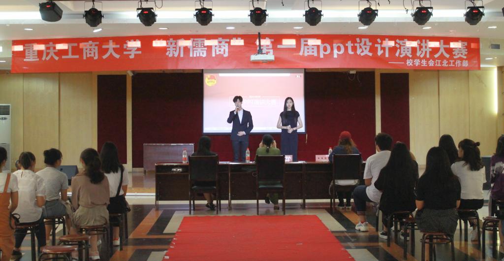 5月18日14:30,由校团委主办、校学生会承办的“新儒商”第一届PPT设计演讲大赛初赛在江北校区学生活动中心举行。校学生会副主席兼大学生艺术团团长何孟磷,校学生会副主席陈静怡,校团委宣传部副部长、第二届视觉设计大赛海报组冠军章菁菁担任本次比赛评委。