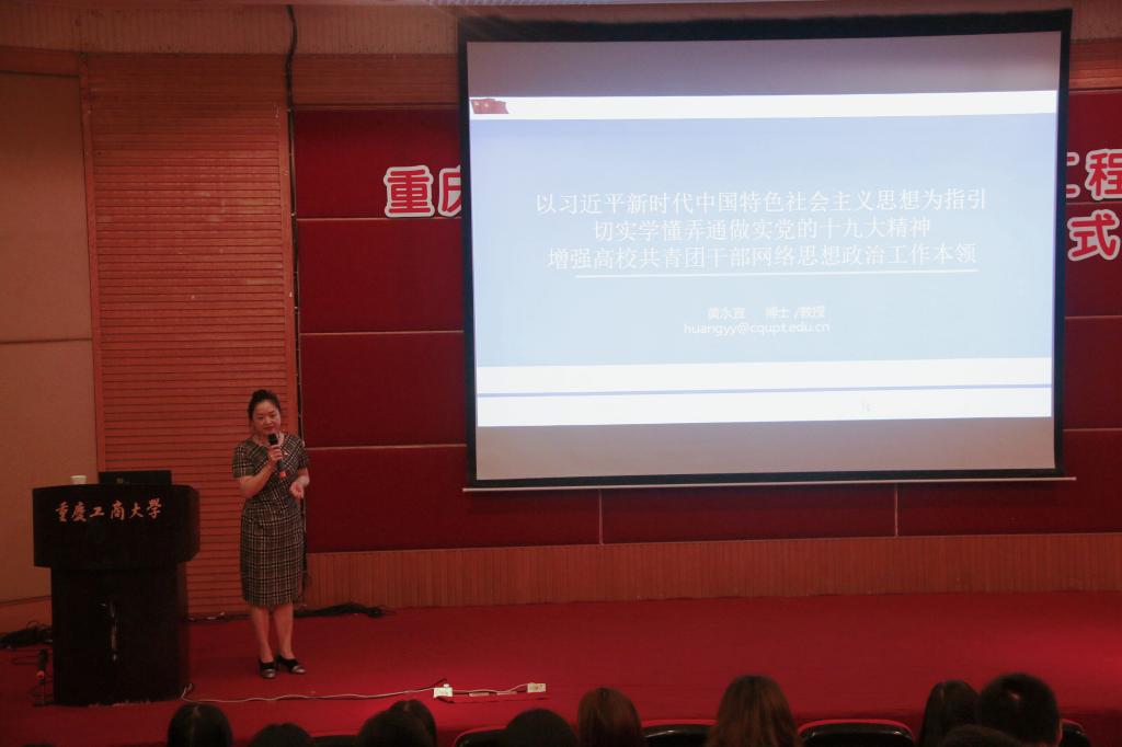 在随后两天半的时间里,培训班邀请到团市委副书记黄永宜做了《以习近平新时代中国特色社会主义思想为指引,切实学懂弄通做实党的十九大精神,增强高校共青团干部网络思想政治工作本领》的主题讲座;马克思主义学院副院长刘富胜作了题为《时代新人:理想、本领与担当》主题讲座;校团委副书记杨娟进行了《爱国励志求真力行——做新时代的优秀学生干部》的主题培训;校团委陈琛老师进行了微团课和团日活动策划的主题分享。老师们采取了图文和视频相结合的方式,声情并茂,加强了学生骨干们的思想建设,而学员们通过积极的配合和认真地思考,对新时代青年的发展方向、学生工作的开展理清了思路,得到了新的认识。