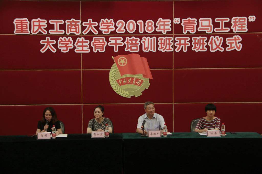 6月22日15:00,开班仪式在南岸校区博智楼7200报告厅举行,团市委副书记黄永宜、副校长李国军、校团委副书记杨娟、陆嘉,全体参训学员参加了开班仪式。李校长为培训致辞,他从骨干培训的战略任务和意义、新时代的机遇和考验等方面出发,向在场的学员提出了强化“四个意识”,发扬“勤学善思、求真笃学”学风和努力成为实践者、传播者、服务者的要求,希望全体团学干部能够通过青马工程培训学习有收获、有成长。