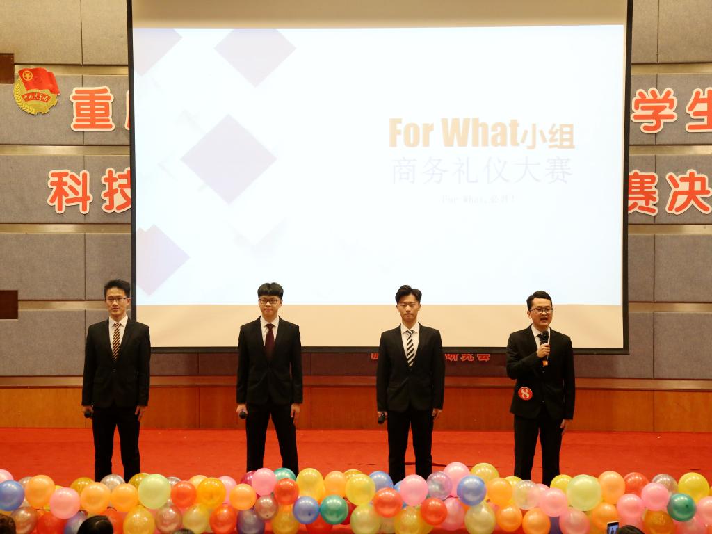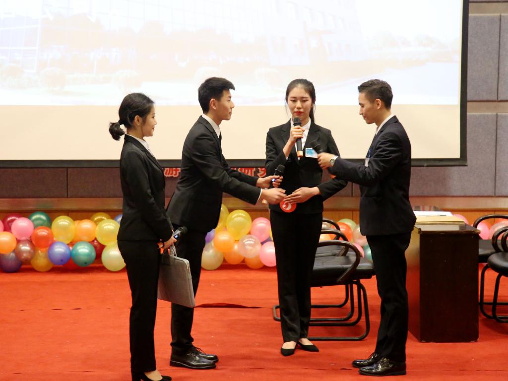 商务礼仪大赛旨在引导我校学生学礼、知礼、行礼,灵活运用商务礼仪知识,领悟“新儒商”文化,塑造内外兼修的良好形象。第十五届旅游文化月之商务礼仪大赛主题是“圆职场之梦,扬礼仪之帆”。历经初赛、复赛的激烈比拼,最终有8支队伍进入决赛。比赛开始前,现场放映VCR回顾了来自我校8个学院参赛报名的20多支队伍在初赛、复赛选拔中的表现,最终入选决赛的8支队伍专场培训的情景。第一个环节是团队风采,各个团队表达自己的参赛感言;第二个环节是商务礼仪相关知识问答,选手在规定的时间内需完成十道题目,不可抢答和超时;第三个环节是团队情景模拟展示,各个团队在模拟情景里展示商务礼仪,例如面试礼仪、签约礼仪,谈判礼仪,衣着礼仪等。第四个环节团队才艺展示,才艺展示形式丰富多样,小品、茶道、唱歌、体操、弹琴,展现了团队合作的风采。评委代表杜继淑老师对本场比赛的各个团队的综合表现进行了点评和总结。最终FOR WHAT队摘得本次商务礼仪大赛桂冠。
