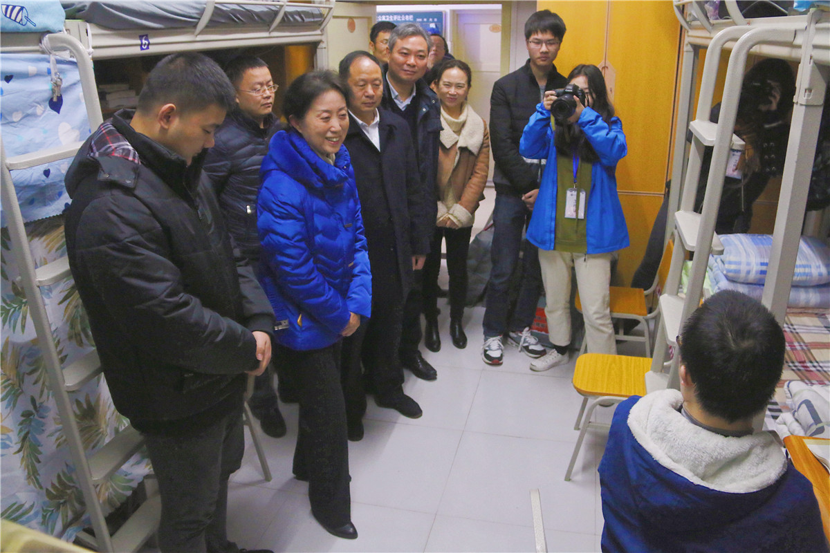 12月28日9:00,在新年即将到来之际,校党委书记李春茹,副校长李国军,党政办、学工部、研工部负责人,校团委副书记杨娟、陆嘉以及相关学院负责人一同到南岸校区南区1幢104宿舍看望了部分家庭经济困难学生,代表学校表达对他们的关心与问候。