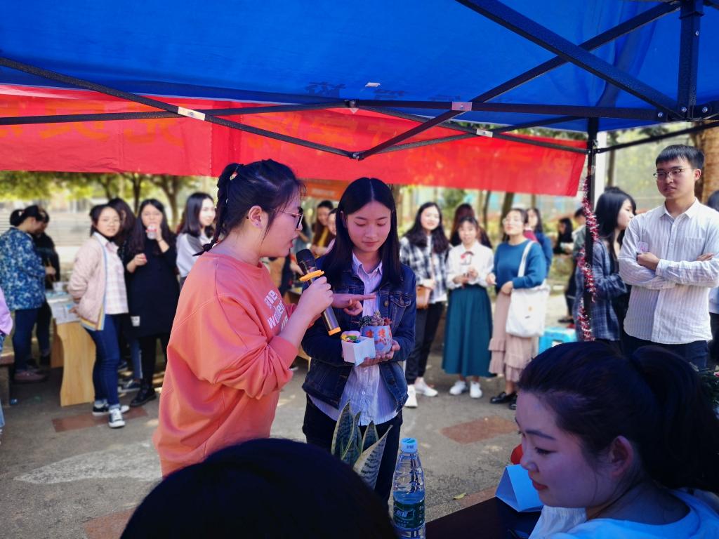3月29日14:00,数学与统计学院党员服务站举办的“手工DIY多肉盆景制作比赛”在周末文化广场顺利开展。数学与统计学院全体入党积极分子参加活动。党员服务站指导老师余思云和来自学校学生会、大自委,文新学院党员服务站的学生代表们参加活动并担任评委。
