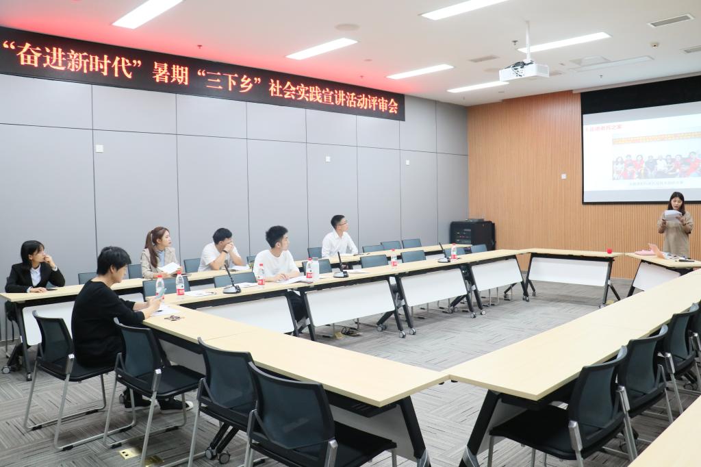 为更好地展现广大青年在实践活动中积极参与脱贫攻坚、乡村振兴等实践活动的优秀事迹、感人故事和典型案例,9月17日中午12:45,校团委杨娟书记、陆嘉副书记、袁影老师和徐阔老师在南岸校区图书馆第二会议室开展2019年“奋进新时代”暑期“三下乡”社会实践宣讲活动评审会,22支来自各学院的宣讲团队参与本次评审会。