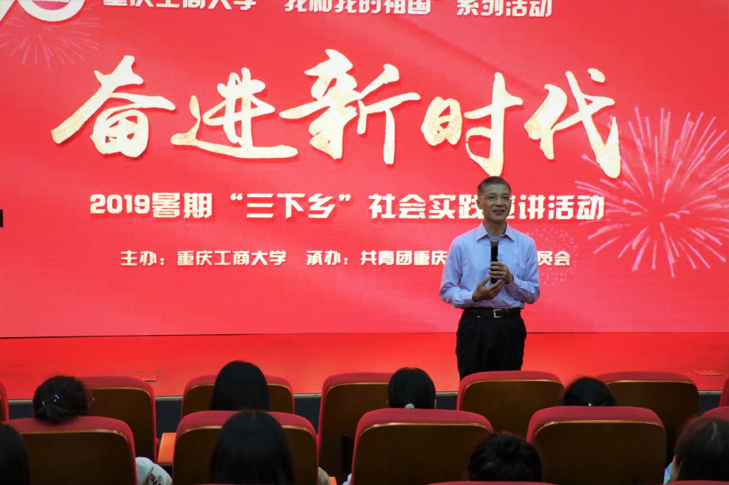 10月11日,“奋进新时代”2019暑期“三下乡”社会实践宣讲活动在兰花湖片区艺术学院报告厅成功举行。副校长陈运超教授、通识学院党总支副书记邹奇、艺术学院分党委副书记冉涛、国际商学院党总支副书记杨倩、校团委副书记陆嘉及各学院的老师与同学们参与了活动。