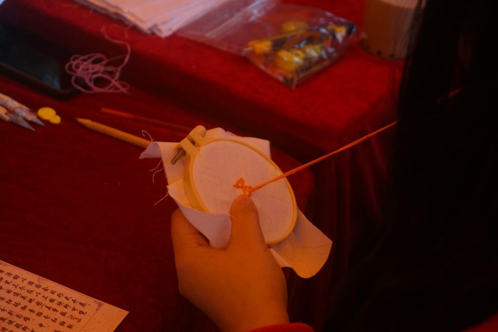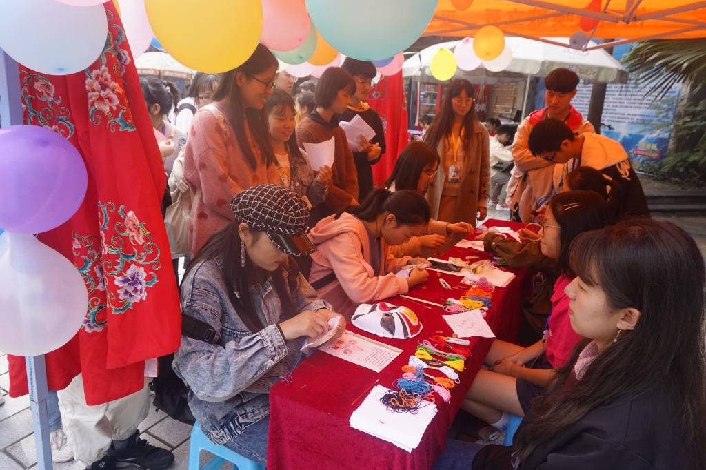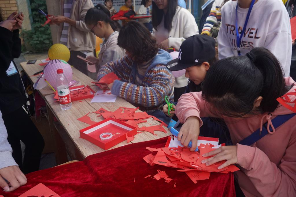 11月10日14:00,经济学院分团委学生会“艺术之美我品尝,民间智慧永传扬”——经济学院五个“一”系列传统文化活动在2138CC太阳集团南岸校区周末文化广场顺利举行。本次活动通过游戏的方式让参与本次活动的同学们在自己动手的过程中感受中国民间手工艺的魅力。本次活动一共有五个游戏环节,分别是:“裁剪出华彩”、“绘脸识英雄”、“造灯耀华夏”、“抛针绣乾坤”和“编结忆古情”。五个游戏分别以剪纸、画脸、造灯、刺绣和编结的方式,使各位同学在亲自动手制作的过程中,体会中国民间手工艺的巨大魅力,感受中国劳动人民的智慧结晶。顺利通过每一个游戏后可在通关地图上盖上相应的图章,获得三个图章及以上可以进行猜谜,根据猜谜情况设有一二三等奖,并且可以根据最终的成绩去兑换相应的奖品。