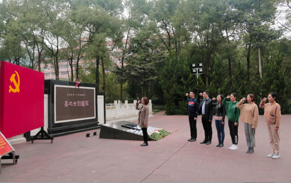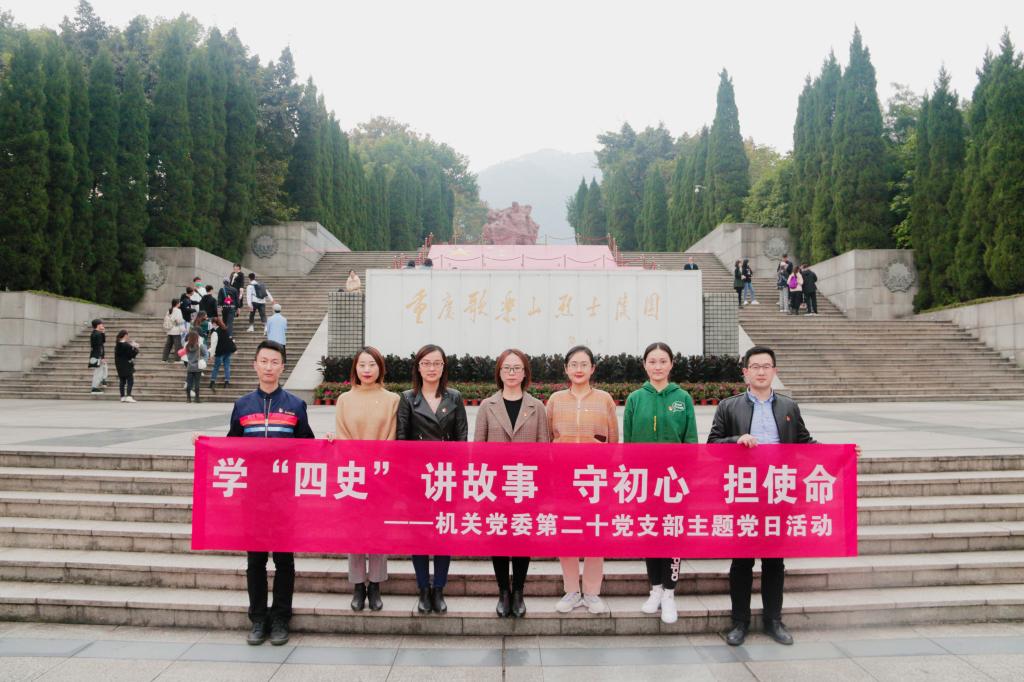 11月6日,“学‘四史’、讲故事”第一站来到了歌乐山白公馆和烈士墓。支部全体党员首先参观了白公馆,聆听了革命者们艰苦卓绝的斗争故事,感受了他们钢铁般的坚强意志、坚定的革命信仰和永不放弃的革命精神。支部党员陈琛同志现场为大家上了题为《从红梅赞谈理想信念》的微党课。他从大家所熟悉的人物“江姐”讲到歌剧《江姐》背后创作的故事,从红岩精神讲到《红梅赞》歌词里“千里冰霜”“三九严寒”“一片丹心向阳开”“唤醒百花齐开放”蕴含的深刻含义。随后,支部全体党员带领部分团员代表前往歌乐山烈士陵园祭奠11.27死难的革命先烈,全体党员面对党旗重温入党誓词,牢记自己的信仰和选择,牢记自己的使命与责任。
