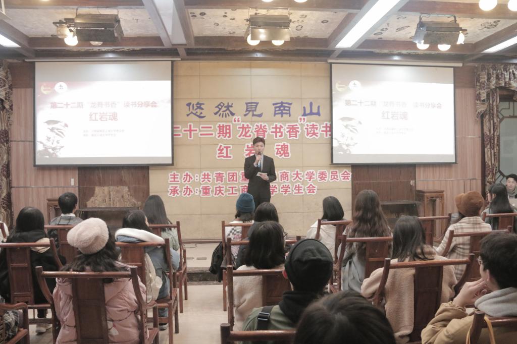 为宣扬红色革命精神,让新时代的青年一代了解过去,铭记历史,面向未来,11月27日下午,由校团委主办、校学生会承办的第二十二期“龙脊书香”读书分享会在南岸校区南山书院顺利举行,本次活动以“红岩魂”为主题,我校40多位读书爱好者齐聚一堂,了解红岩故事,品味红岩精神。