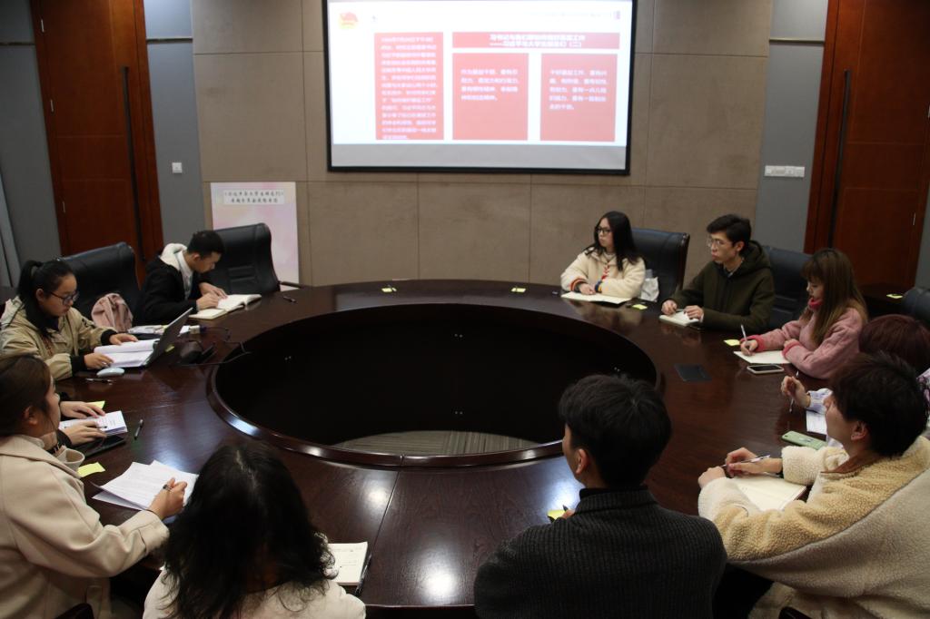 为使我校青年学子能紧跟新时代发展步伐,启发同学们将个人理想和国家理想相结合,立足当下,建功新时代。12月4日中午,我校学生会在图书馆第四会议室召开《习近平与大学生朋友们》专题学习会。本次主题学习会由校学生会主席团成员夏梓瑞主持,我校学生会全体主席团成员、部门负责人参加本次会议。
