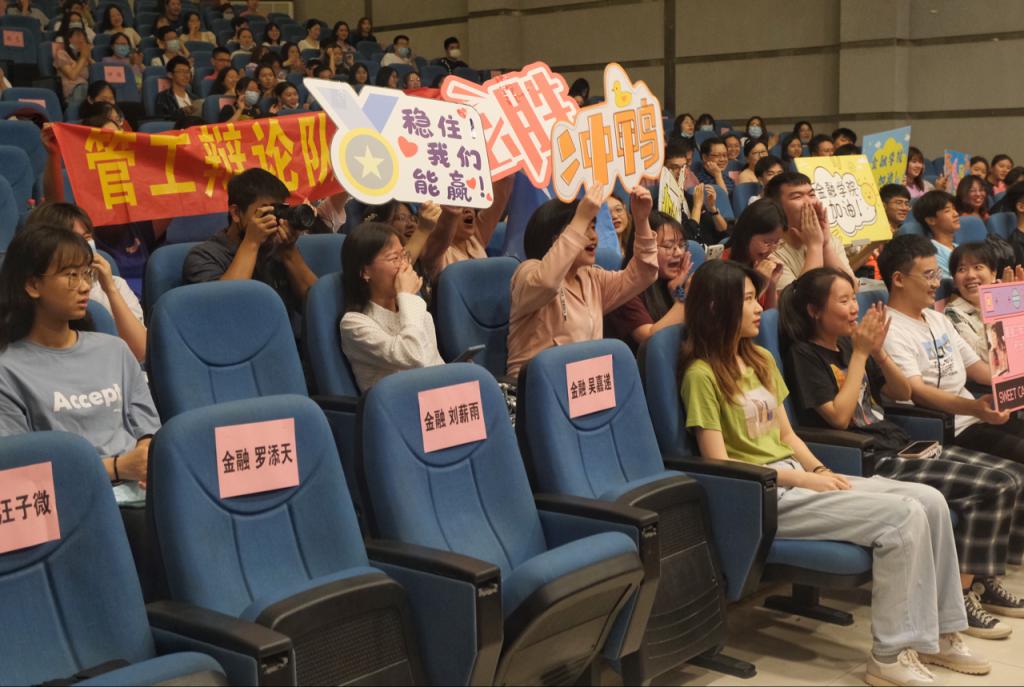 本场比赛的对阵双方分别为金融学院与管理科学与工程学院,两者围绕“直播电商对实体经济发展利大于弊或是弊大于利”的主题展开辨析和论述。代表“直播电商对实体经济发展利大于弊”观点的正方金融学院辩论队指明其利弊比较的标准是“直播电商能否在促进经济高质量发展过程中起到积极的推动作用”,并从“在互联网背景下,直播电商进一步释放私域流量的红利,为促进实体经济发展赋予新动能”、“在数字化背景下,直播电商所提供的全新供应链模式能有效促进实体经济转型升级”两方面进行论证。而代表“电商直播对实体经济发展弊大于利”观点的反方管理科学与工程学院辩论队指明其利弊比较的标准是“直播电商是否能使实体经济长远且稳定地发展”,并从“生产和消费”两个维度进行论证。双方辩手激烈的唇枪舌战和缜密的逻辑思维令在场听众赞叹不已、拍手称绝。