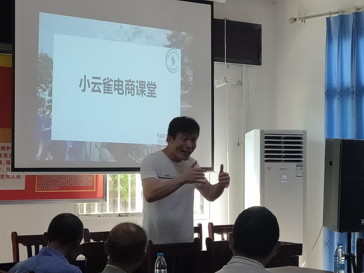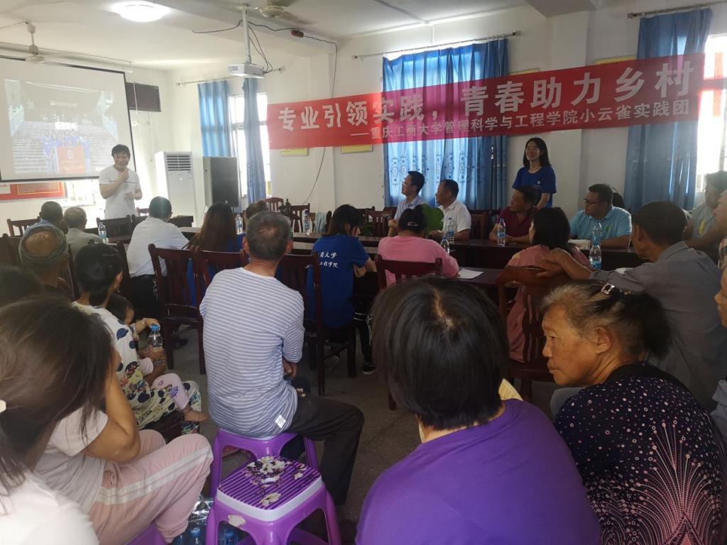 为提高农户电商意识,服务乡村振兴,管理科学与工程学院小云雀助力乡村振兴实践团于7月13日在重庆忠县石宝镇新政村党群服务中心开展电商课堂,讲授农村电商知识和实操演示。新政村及周边村社农户积极参加本次课堂,村委会的会议室内座无虚席。