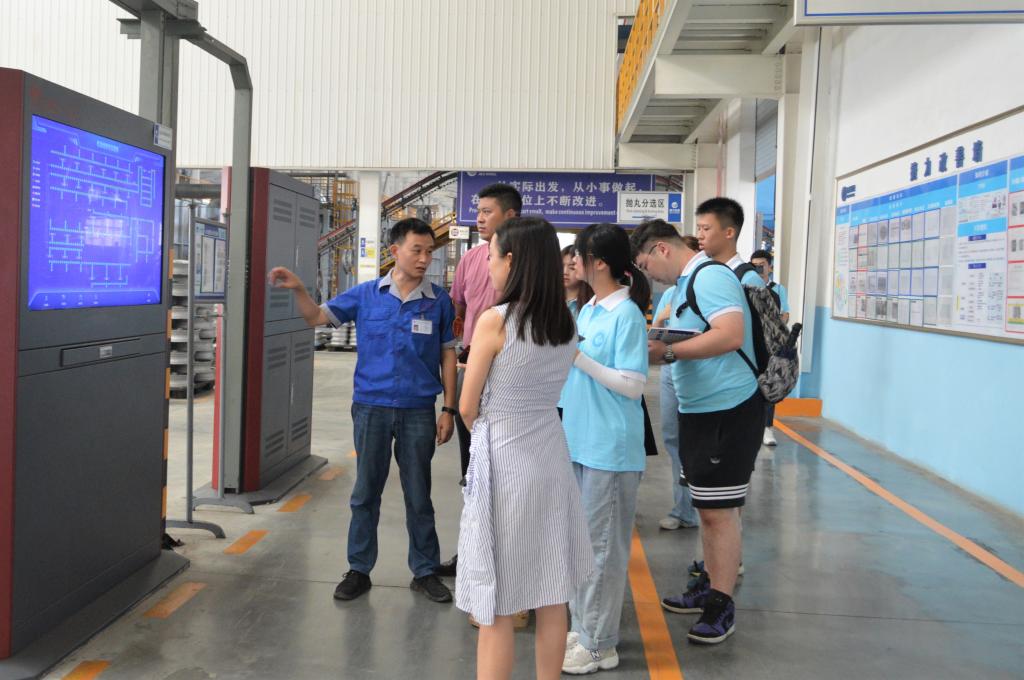 工业兴,则经济兴。实践团跟随垫江县工业园区管委会开发服务中心副主任张茜走进重庆捷力轮毂制造有限公司,感受高新技术的魅力。该公司是一家集研发、生产、销售和自营进出口于一体的摩托车汽车铝合金轮毂制造企业,已连年被国内外众多摩托车厂家评为A级优秀供应商。在企业车间走访中,重庆捷力轮毂制造有限公司生产管理部部长唐德波介绍到,车间流水线均由智能化机械操作,大大节约了人力成本,同时增添了智能化看板,能快速有效地智能化检测到刀具磨损、使用寿命、生产产量等数据,相比以前的旧厂房大幅度增值增产。“唯细唯精,恒志恒为”、“全心全力,尽善尽美”,正是这宝贵的工匠精神助推企业不断改革创新,提档升级!