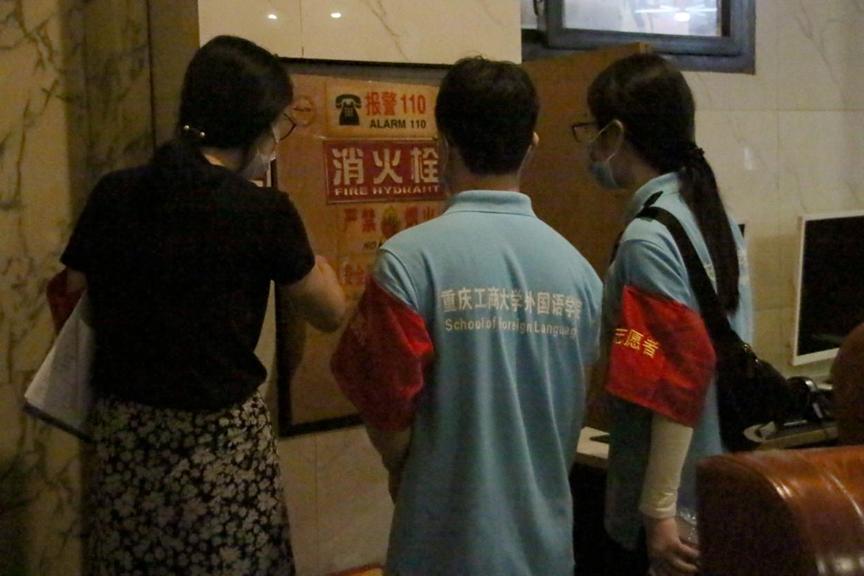 在人和街社区附近,外国语学院“三下乡”党史学习实践团成员邀请当地居民扫码关注公众号——“离退休干部”和“红岩青松”,并进行相关宣传,帮助居民进一步了解社区里的便民服务。胡辰等志愿者走访慰问社区里的独居老人,聆听小家故事,传递社区温暖。此外,刘睿等志愿者前往养老服务站,与养老服务站主任积极交流日常工作并为养老服务站做清洁。志愿者张蕾和王仁伟从人和街社区到中法学校旧址,一路共抽查了约23个人和街辖区内的消防设施,并督促消防设施不完善的商铺和楼栋加以整改。为建设绿色文明的和谐社区,党史学习实践团在街道开展卫生维护工作,主要清理烟头和白色垃圾。同时,根据检查标准对网吧进行例行检查并向居民们进行“扫黄打非”宣传和派发相关内容的宣传单,抵制有害出版物和信息。志愿者通过打电话邀请居民来参加“创建文明家庭”活动,并做好电话记录。针对居民提出的系列问题,志愿者耐心解答。志愿者冉小雪表示,这项工作难度不大,但需要我们细心、负责,我对社区工作有了更深刻的认识,体会到社区工作者的职业精神——责任意识、奉献意识、服务意识。