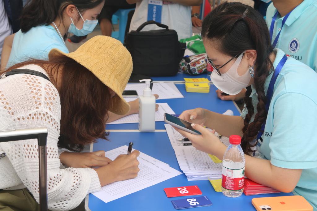 迎新期间,志愿者们在重庆西站、重庆北站的出站口分别设立了“2138CC太阳集团”的蓝色指引牌,帮助引导新生熟悉入学报到流程,耐心细致地解答新生的问题,每一位志愿者都在各自的岗位上认真负责地开展迎新工作,成为了火车站一道格外靓丽的风景线。