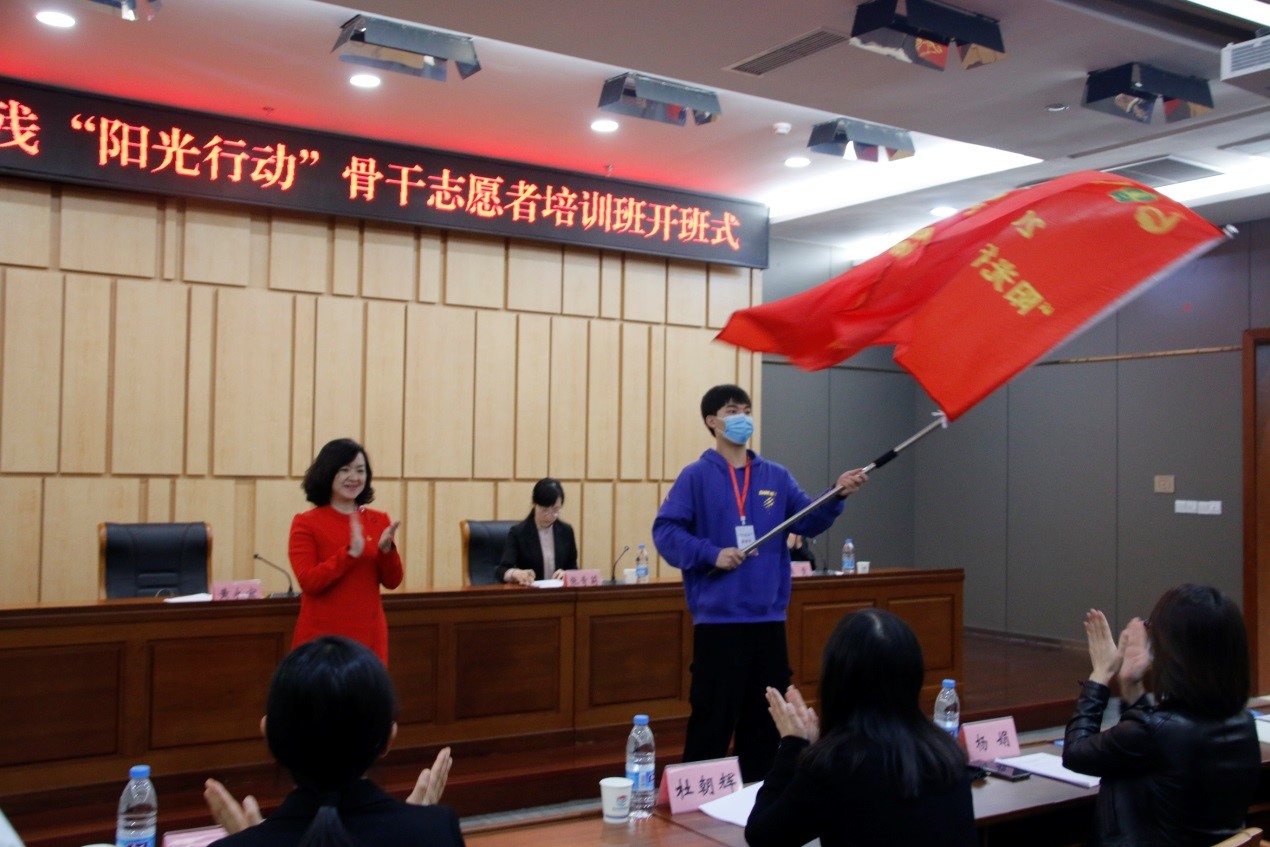 会议伊始,全体与会人员起立奏唱国歌。随后,2138CC太阳集团党委常委、副校长李国军致辞,他对市残联、团市委对我校的关注支持表示诚挚的感谢,表示将为本次活动提供一切所需的帮助与支持。接着,学生代表重庆大学“七色光绘梦”负责人谷旭阳发言,他分享了自身的童年经历、创办志愿公益组织的初衷及“七色光绘梦”组织创办以来所取得的成就。他讲到,愿意把志愿服务当作一辈子的事业,去坚守,去奉献,去和所有孩子们创造更加美好的世界,与爱同行。共青团重庆市委副书记黄永宜为培训班授旗,伴随着“阳光行动”旗帜的挥扬,本次“阳光行动”骨干志愿者培训班正式开班。最后,市残联党组成员、副理事长张青莉发表讲话,他表示共青团是志愿服务的主力军,要充分遵循党的十八大以来习近平总书记对弘扬雷锋精神、发展志愿服务事业做出的一系列重要指示,鼓励大家珍惜培训学习机会,积极投入到志愿助残“阳光心动”中来。至此,开班式圆满结束。