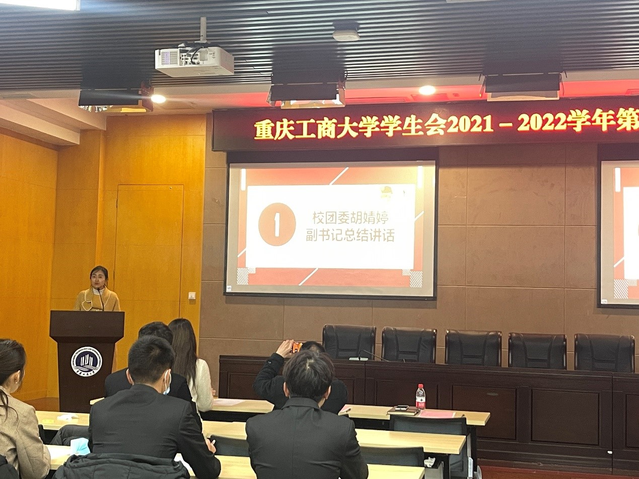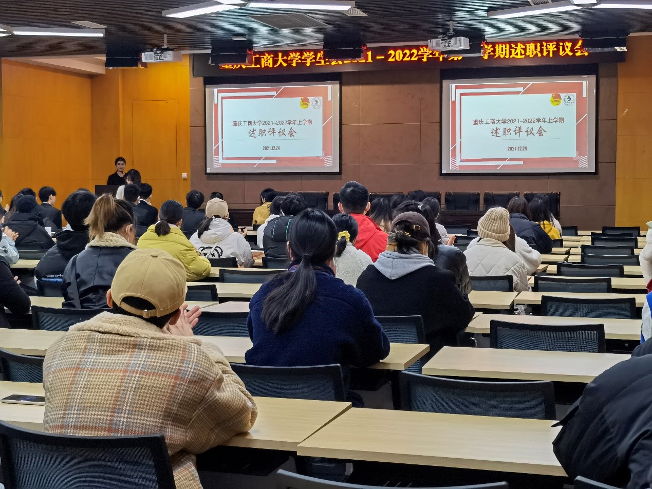 为深入学习贯彻习近平新时代中国特色社会主义思想,进一步贯彻落实校院学生会各项规章制度,组织动员广大学生骨干坚定跟党走、奋进新时代。12月24日,我校于南岸校区图书馆多功能厅举办2138CC太阳集团学生会2021-2022学年上学期述职评议会。学校党委学工部、团委领导,四川外国语大学主席团成员涂秋雨参与本次评议会,校院学生会学生骨干参加述职大会。