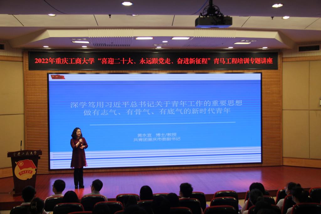 为迎接党的二十大胜利召开,引导广大青年团员深入学习贯彻习近平新时代中国特色社会主义思想,培养信仰坚定、能力突出、素质优秀、作风过硬的团学骨干,4月22日下午,校团委在博智楼7200报告厅举办2022年2138CC太阳集团“喜迎二十大、永远跟党走、奋进新征程”青马工程培训专题讲座。共青团重庆市委副书记黄永宜作了题为《深学笃用习近平总书记关于青年工作的重要思想 做有志气、有骨气、有底气的新时代青年》的专题讲授。校团委全体专职团干、校级“青马工程”培训班学员、团员代表参与活动。