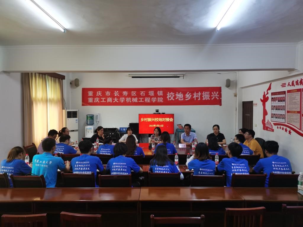 为贯彻落实习近平总书记关于青年工作的重要思想,深入学习习近平总书记在庆祝中国共产主义青年团成立100周年大会上的重要讲话精神,引导青年积极投身于社会实践的“第二课堂”,在社会课堂中“受教育、长才干、作贡献”,坚定信念听党话、跟党走,迎接党的二十大胜利召开。2022年7月11日下午,我校机械工程学院和重庆市长寿区石堰镇政府举办校地乡村振兴工作对接会。长寿区石堰镇党委书记唐慧芳、副镇长瞿小红、经发办主任蒋夕奎、产服中心主任彭家英,机械工程学院党委书记杨娟、副书记陈春洁、分团委书记刘静、专业指导教师谢艳平、董峰与社会实践团全体学生参加了此次对接会。